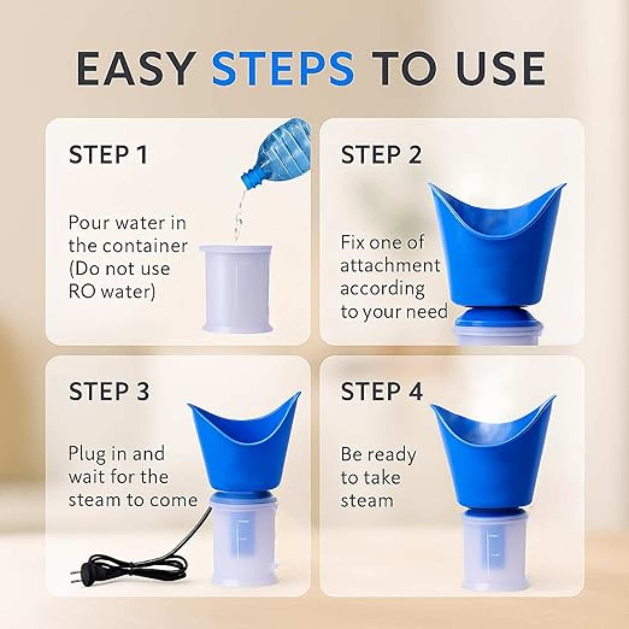 Heats water quickly to deliver steam within seconds, ensuring immediate therapeutic relief.